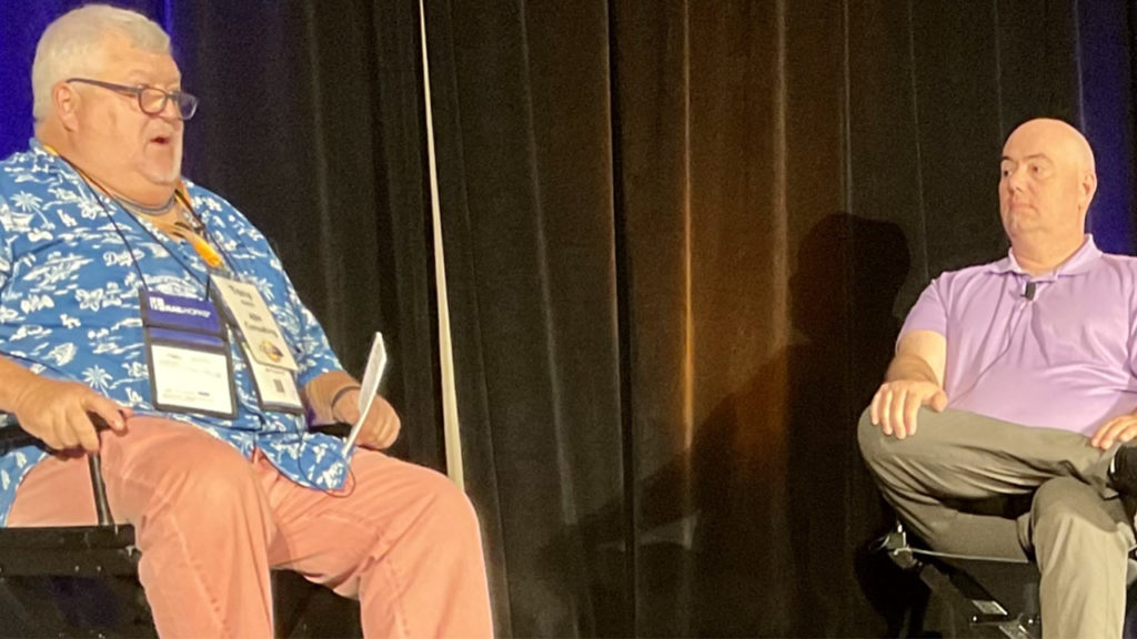 Jim Blaze reporting on the NEARS (Northeast Association of Rail Shippers) Fall Conference: ABH Consulting independent analyst Tony Hatch and TD Cowen Managing Director/Railway Age Wall Street Contributing Editor Jason Seidl have developed a sort-of rail business entertainment style. It’s highly technical, rapid-fire, requiring focused listening, or the audience can miss the main points. Hatch, a passionate baseball fan, hurls fastballs. Seidl’s speaking style is more like an NBA player with a deadly accurate three-point shot—and an occasional flying slam-dunk.