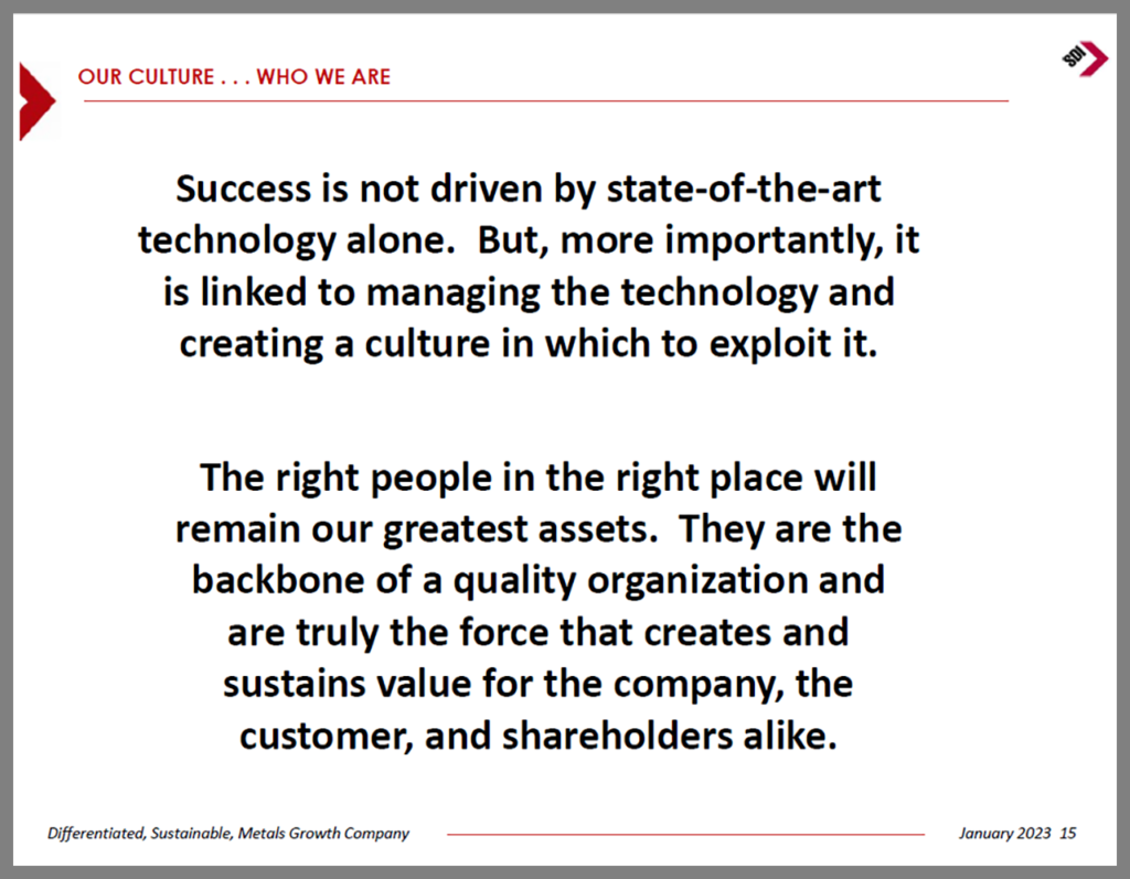 SDI has partnered with OmniSource, one of North America’s largest scrap metal processors and distributors, for its source of recycling materials. It also invites customers to locate on site with the aluminum flat rolled mill to enhance cost efficiencies, providing a “closed loop” aluminum coil-to-scrap sourcing opportunity. SDI Senior Vice President Strategic Projects Glenn Pushis pointed out most flat rolled aluminum is shipped by truck to prevent damage in transit by rail. An opportunity exists to grow movement of coils by rail if they can be handled, packaged and secured to eliminate such damage. The same railcars could be used to ship aluminum slabs sourced from southern and western markets to the mill and then returned with finished coils.