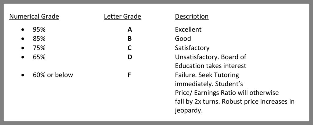 CSX gets a B+ for intermodal. Management freely admits they must do better, or else intermodal will not gain market share or grow as rapidly as the railroad needs. CSX gets Ds and an F for other measures. Management acknowledges that these must turn around ASAP.