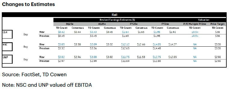 TD Cowen Insight: Merger to Dominate Rail Earnings Despite Diverging Q3 Operations