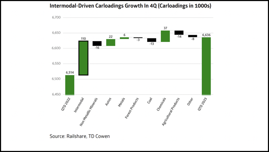 Class I’s remain confident on cross-border intermodal offerings noting that new services are not only operating on truck-like delivery times but also recording 90%-95% on-time performance. We are encouraged to see cross-border intermodal service quality remain robust through the fourth-quarter surge in international volumes.
