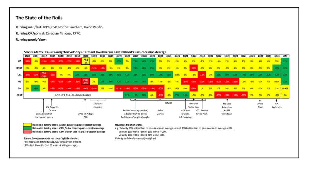 Our current, primary, focus remains CSX’s handicapped network, as it struggles to maintain efficient fluidity while rerouting around both the closed Blue Ridge subdivision (Hurricane Helene damage) and Baltimore’s Howard Street Tunnel (clearance work). Throw winter into the mix and you’ve got a bad short-term scenario.
