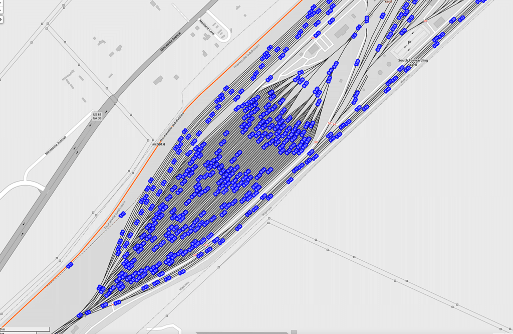 We always pick up some tidbits on these trips, and we garnered some more context around terminal dwell. Waycross’s dwell is currently sitting at 24.9 hours, and we all know this is defined as the average car transit time from in-gate to out-gate, excluding cars on run-through trains (trains that only stop for an hour or two to change crews). However, the 24.9 consists of three main components. The biggest of course is the humping operation: in-gate, classification, out-gate, within 24 hours. The second piece we were reminded of is that hump yards also have a local yard within the same complex, and cars in this yard typically sit for longer (72 hours isn’t uncommon). Third, these yards also have car repair shops, and the terminal dwell number includes the hour count from the point the cars are released from the repair shop to the out-gate. So, the 24.9 is a blended number for the humping operation (less than 24 hours), local yard (more than 24 hours) and released from repair. The point of this is that you can’t simply compare one hump yard with another on dwell because there’s a mix effect based on the relative scale of local yard vs. humping operations.