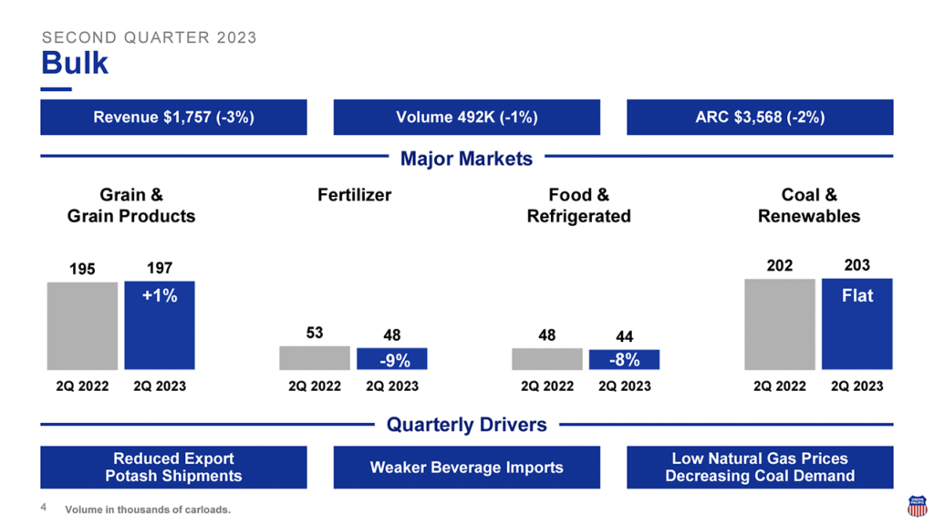 “We note that UP faces incoming headwinds that could limit near-term upside. UP recently reached new agreements with rail unions relating to a host of work/life issues and anticipates the cost impacts of new labor agreements to materialize in 2H23 (increase of $50MM-$70MM called out) and bleed into 1H24. Additionally, rail regulation risk is salient in the form of a reciprocal switching rule likely to be formalized in 2H23, and FRA restrictions on train length and weight (probe presently under way).