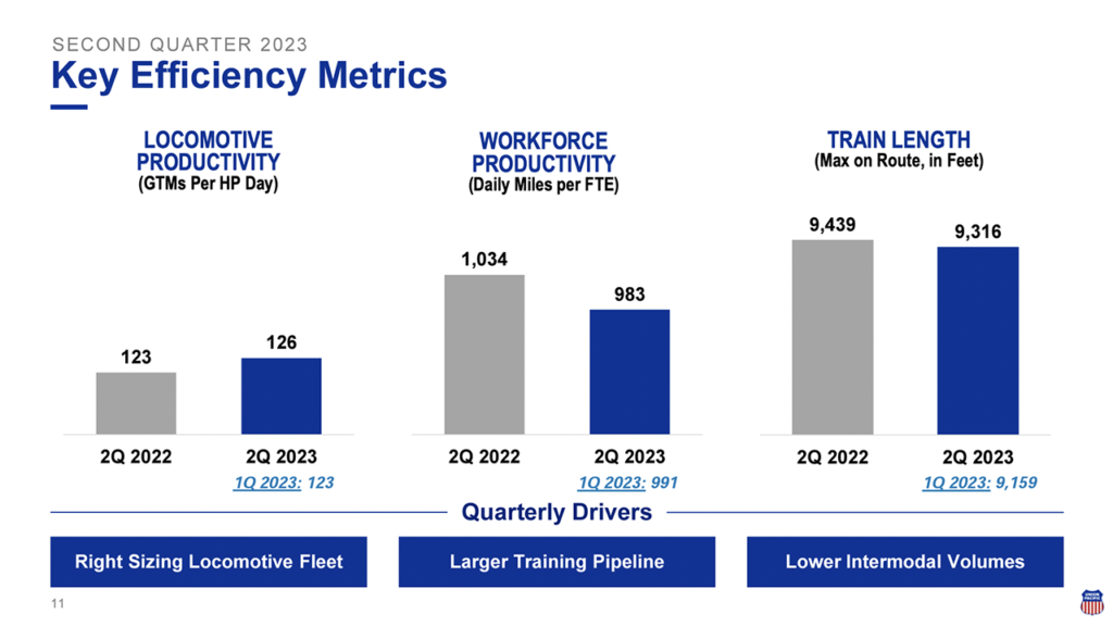 - Quarterly workforce productivity decreased 5% to 983 car miles per employee vs. second-quarter 2022.