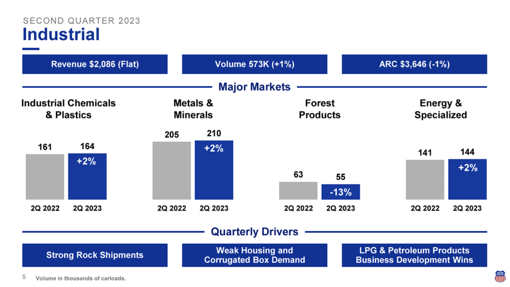 Looking ahead, UP reported that consumer-related volumes will likely drive full-year volume expectations below industrial production; the current forecast, it said, is +0.1%. Additionally, pricing dollars will be in excess of inflation dollars. The railroad is forecasting $50 million to $70 million in labor expense from new agreements in second-half 2023. Finally, it reported a capital plan of $3.6 billion.
