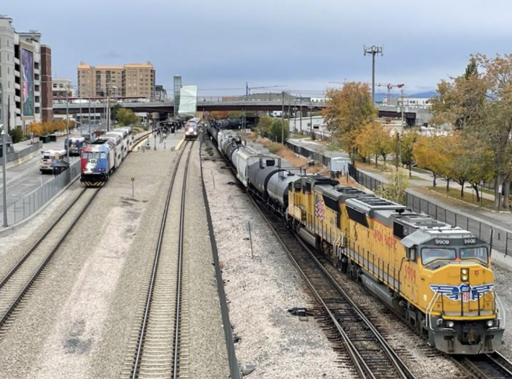 UP partnered with Salt Lake City, the Utah Transit Authority (UTA), and the Utah Department of Transportation to fund the bridge that crosses both freight and passenger rail tracks: three UP tracks and two UTA tracks.