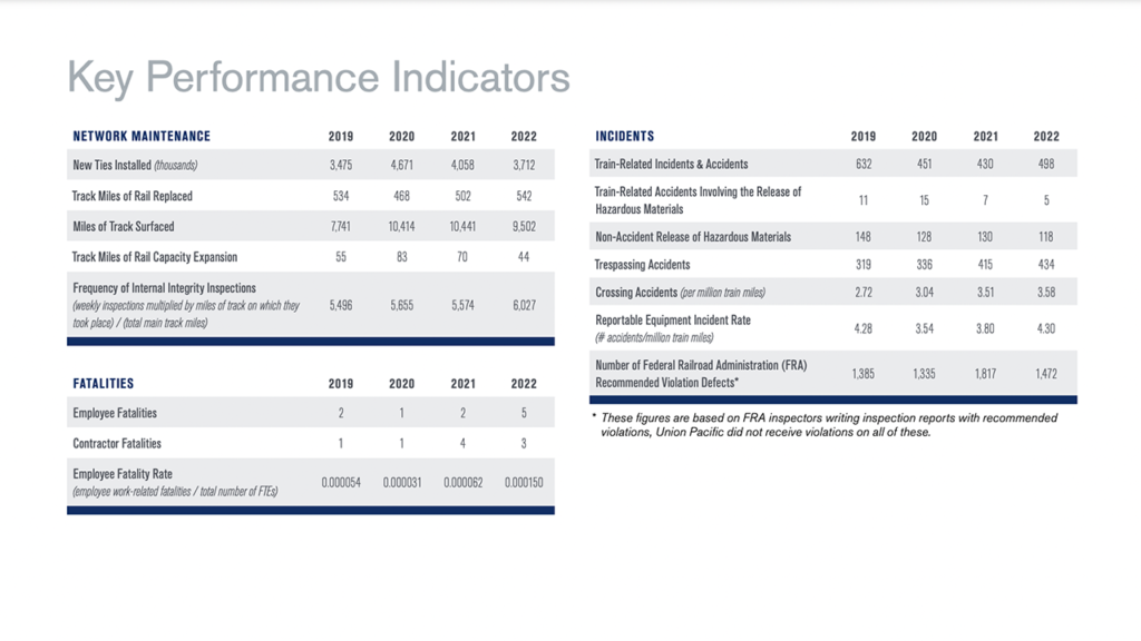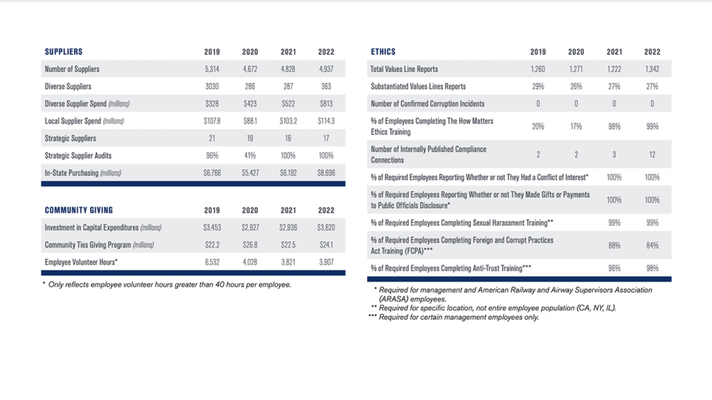 • UP said in 2022 it accelerated its recruitment efforts and exceeded its goal of hiring nearly 4,000 employees “despite post-pandemic labor market challenges.”