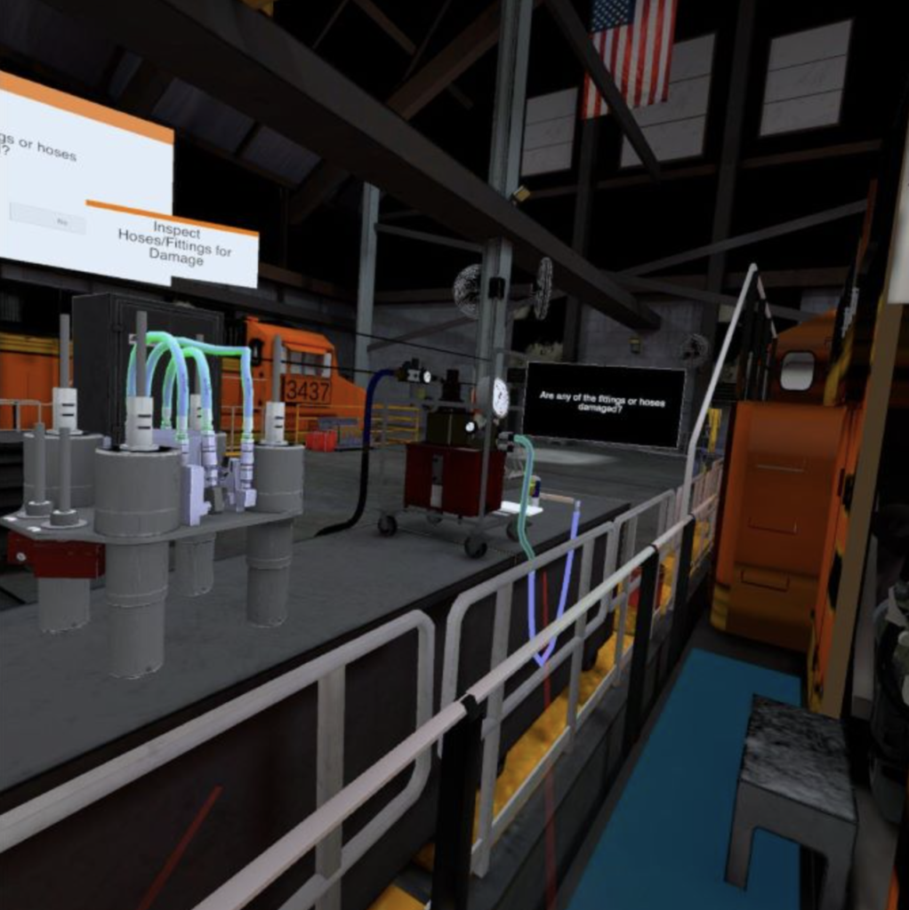 According to Christopher Skinner, BNSF has implemented mechanical VR training in the field and “the plan is to have folks who attend our Tier IV instructor-led training class go through the VR material first before they perform the process in reality.”