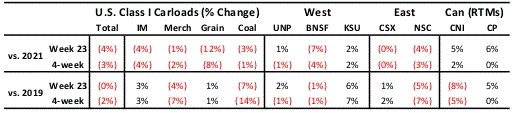 Week 23: U.S. Rail Traffic Behind 2021 Levels, Flat With 2019