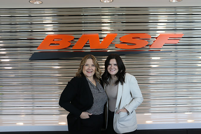 Kathleen Meisinger has worked for BNSF for 35 years, most recently as the Director of Technology Services. Her daughter, Allison, watched her mom work at BNSF her whole life. As she went off to college, she had intentions of going into marketing, never planning to work for BNSF. But after an internship with J.B. Hunt, she knew she wanted to work in transportation and applied at BNSF without telling her mom.