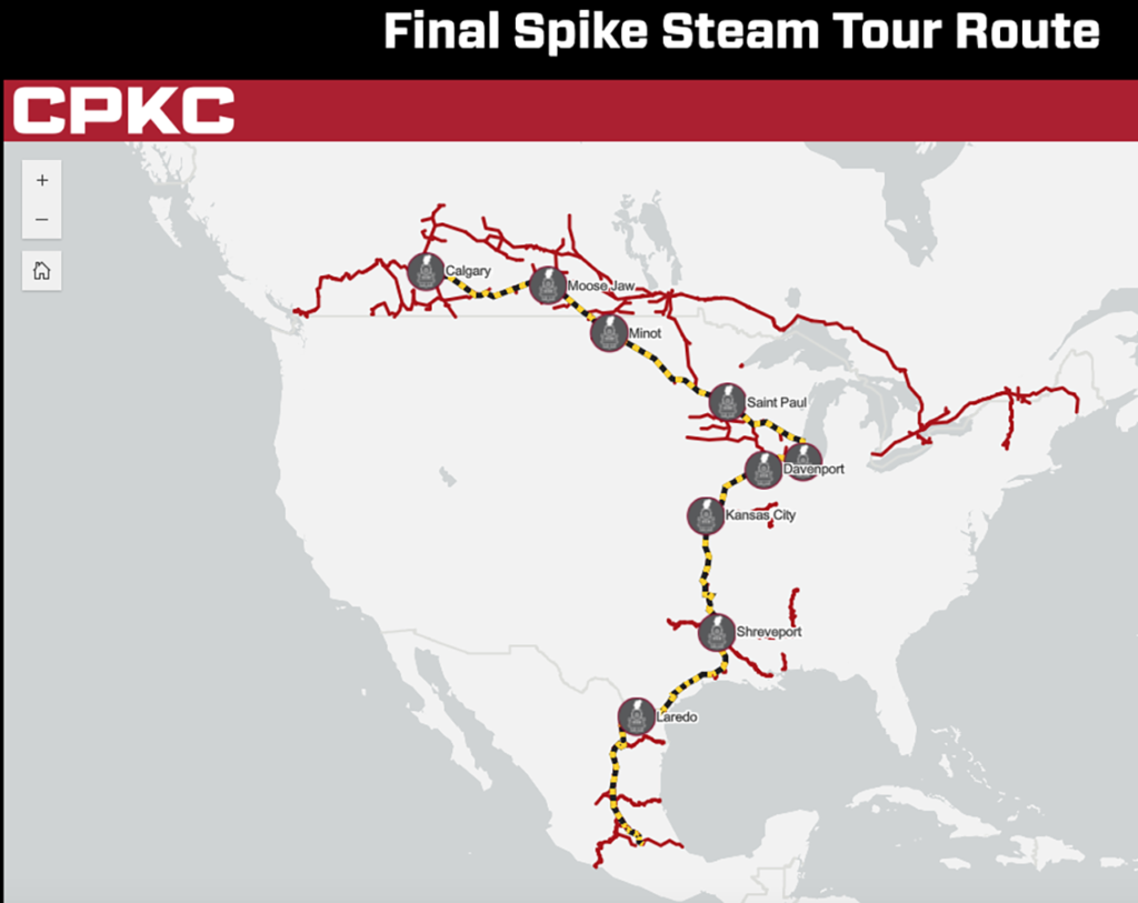 Canadian Pacific Kansas City’s long-awaited Final Spike Anniversary Steam Tour of Canadian Pacific Hudson 2816, The Empress, from Calgary to Mexico City to mark the one-year anniversary of CPKC’s official merger, kicked off April 24 in Calgary.
