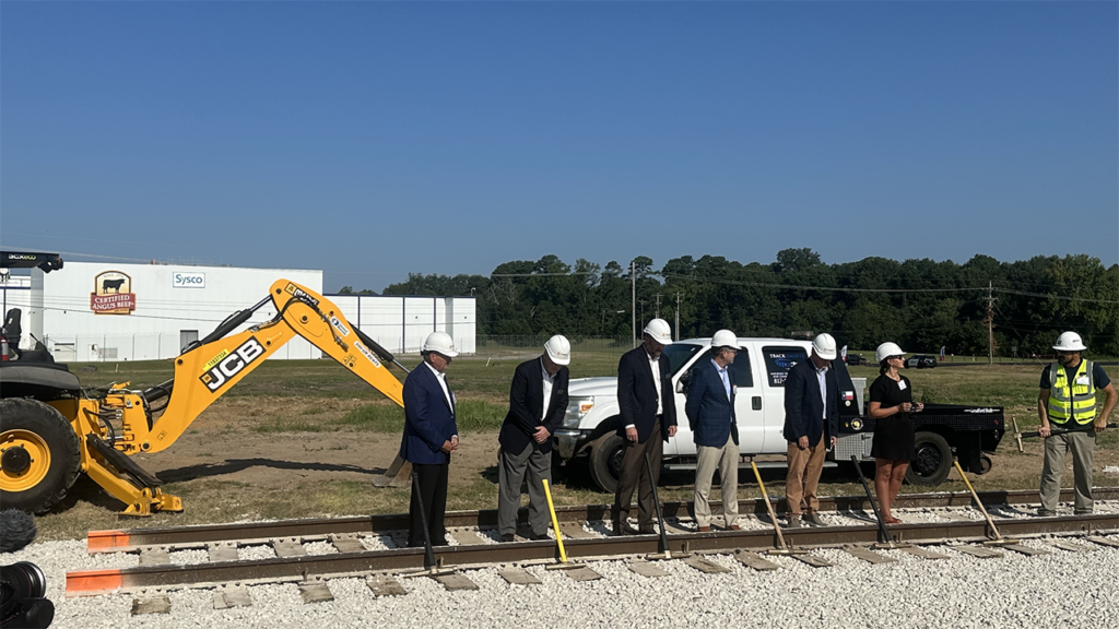 As part of the ceremony, Custom drove a “Golden Spike” into a new rail spur at the Longview Multimodal Distribution Facility, which it said will be “capable of transloading thousands of railcars and trucks per year.” The 175-acre site, located near Interstate-20, is expected to be operational within 12 months. The company operates nine other multimodal distribution facilities and depots in Florida, Illinois, Louisiana, Missouri, Oklahoma, South Carolina and Texas.
