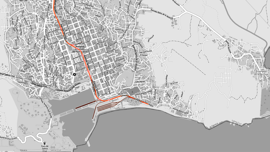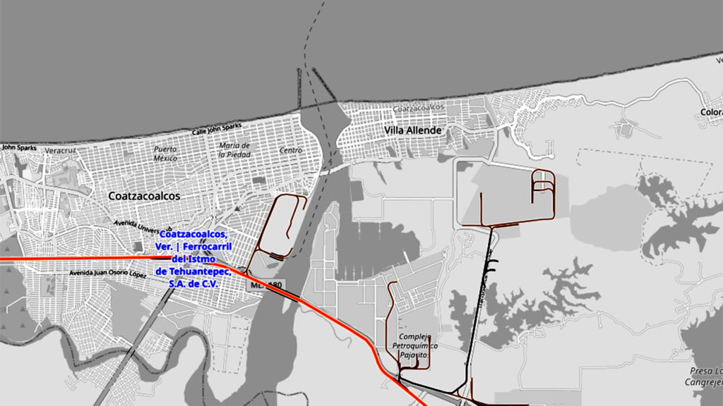Coatzacoalcos. OpenRailwayMap.org screenshot.