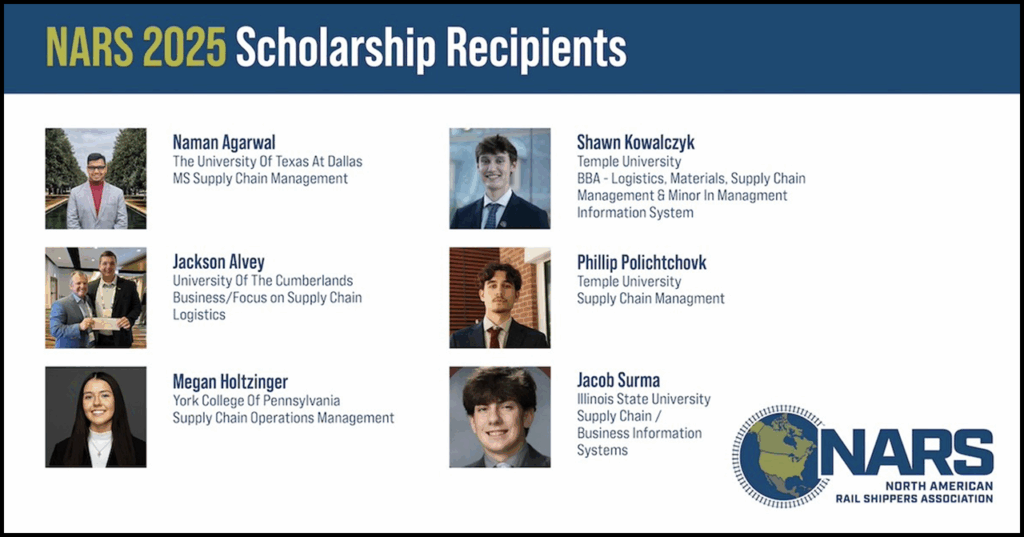 Also during the meeting, NARS announced its 2025 Patrick J. Ottensmeyer Memorial Scholarship recipients. Selected based on their academic achievement, extracurricular activities, and community service, the association said they are a blend of traditional undergraduate students, as well as some working on advanced degrees in fields associated with the transportation industry.