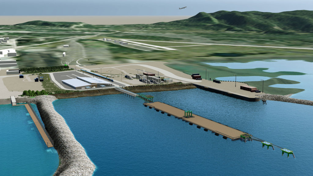 “Designed as a turn-port for Royal Caribbean’s ships, the double-barge haul features a concrete deck with ample space to safely embark passengers while simultaneously supporting efficient provisioning,” according to ARRC. “By designing for Royal Caribbean’s Quantum class specifications, the modernized facility can easily accommodate all classes of cruise vessels sailing in the Alaska market, as well as potential winter cargo shipments in coordination with ARRC’s adjacent freight dock. The dock will also accommodate electrification to allow for shore power on both sides of the pier—an important new feature to meet future regulations and objectives for low emission solutions.”