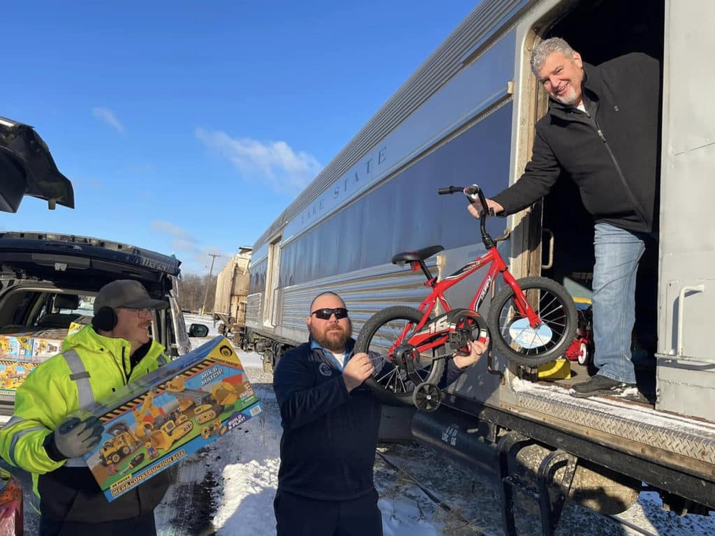 While many, many ASLRRA members are active in their communities throughout the year, the winter holiday season often turbocharges these efforts. Railroads and supplier companies plan a variety of events benefiting those in their communities, from toy drives to holiday excursions, and even giving Santa himself a ride to local celebrations.