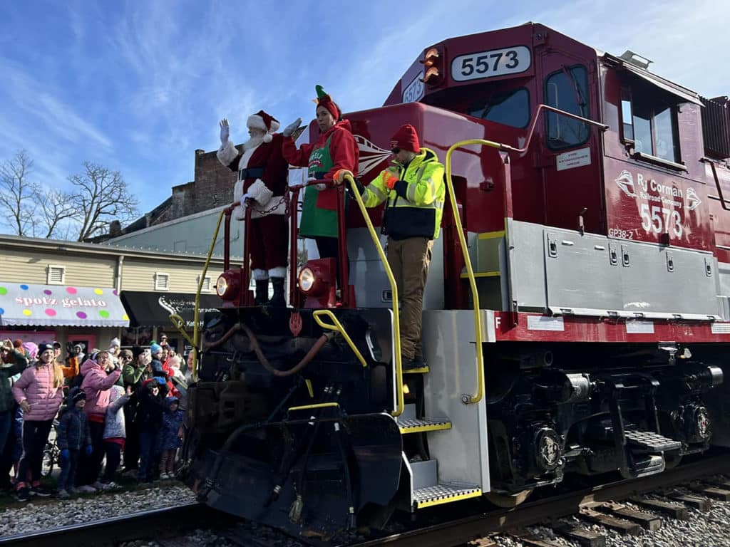 Out in Windsor, Colorado, OmniTRAX’s Great Western Railway brought Santa to the opening of the Windsor Wonderland holiday event on Dec. 7, where he participated in the town’s annual tree lighting ceremony and posed for photos with event attendees. A week earlier, Santa, Mrs. Claus and Santa’s top elf arrived at a Christmas celebration in Midway, Kentucky on one of ASLRRA member parent company R. J. Corman Railroad Group’s red engines.