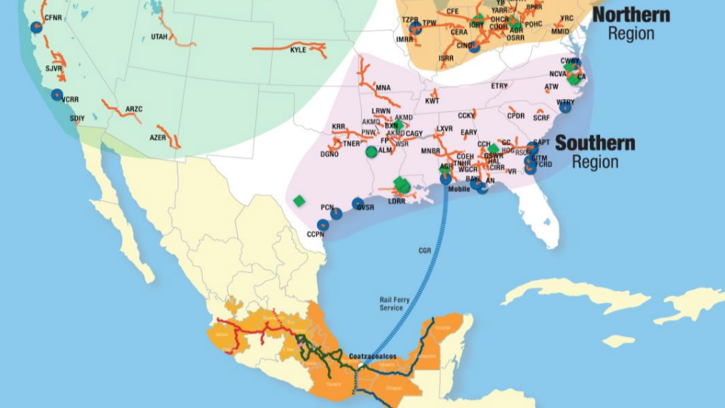 CG Railway has direct interchange in the U.S. with G&W subsidiary Alabama & Gulf Coast Railway, CN, CSX, Norfolk Southern and Alabama State Port Authority’s Terminal Railway (with connections to BNSF, Canadian Pacific Kansas City [CPKC], Union Pacific, and Mississippi Export Railroad, among others), and in Mexico with GMXT’s Ferrosur (with connections to GMXT’s Ferromex, FCCM/FIT, TFVM and CPKC de México).