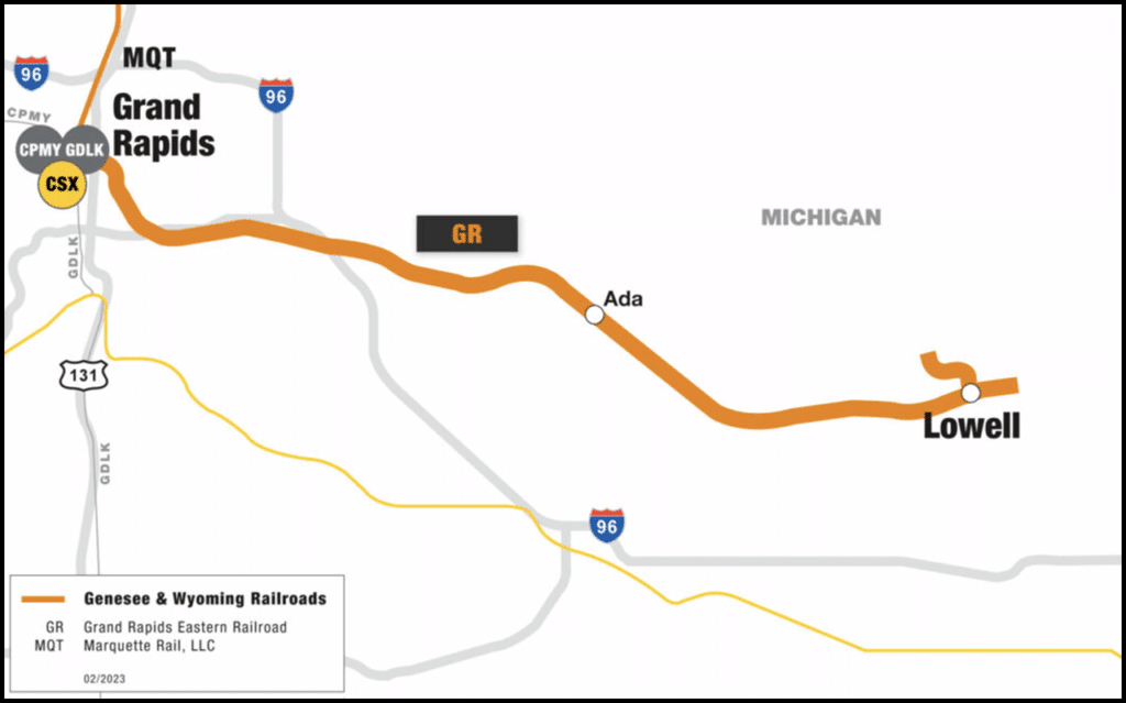 King Milling used a Freight Economic Development Program grant and G&W subsidiary Grand Rapids Eastern Railroad (GRE) used a Michigan Rail Enhancement Program grant to upgrade rail infrastructure that G&W reported via social media “supported increased freight rail traffic for King Milling’s recent flour milling expansion project” in Lowell, part of Kent County. GRE’s $2.5 million grant went toward tie and ballast replacement, track surfacing, and bridge improvements.