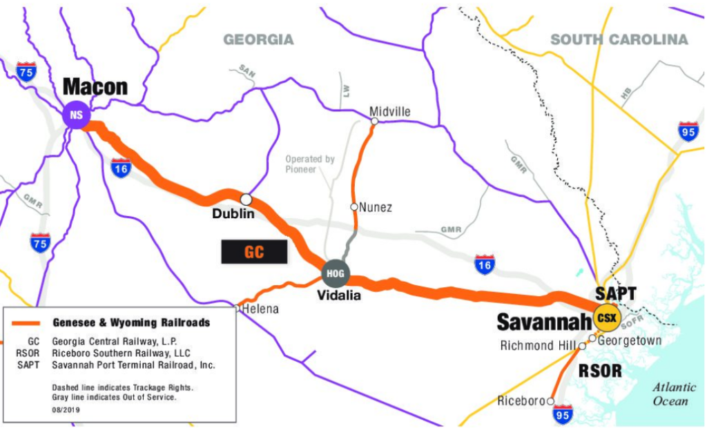 GC on May 23 said it would haul inbound materials to support production at the plant as well as outbound finished vehicles. (Details of production models “will be shared at later dates,” according to Hyundai Motor Group.) The 211-mile short line interchanges with CSX at Savannah; Heart of Georgia Railroad at Vidalia, Ga.; Norfolk Southern at Macon, Ga. (see map, left).