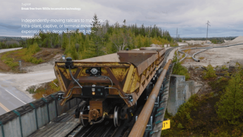 Intramotev describes itself as “the first company in the world to commercially deploy autonomous freight railcars.” TugVolt technology is currently in revenue service for Carmeuse Americas in Michigan’s Upper Peninsula (above). The company has moved more than 250,000 tons of material this year and has delivered more than 3,500 carloads in production.