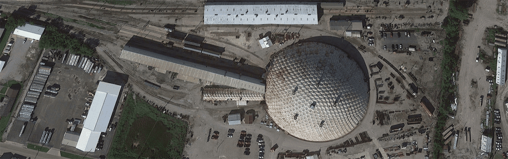 The Wood River Transload Terminal has a geodesic dome used for indoor storage and transloading commodities like soda ash and steel, and a 450-spot railcar storage yard.