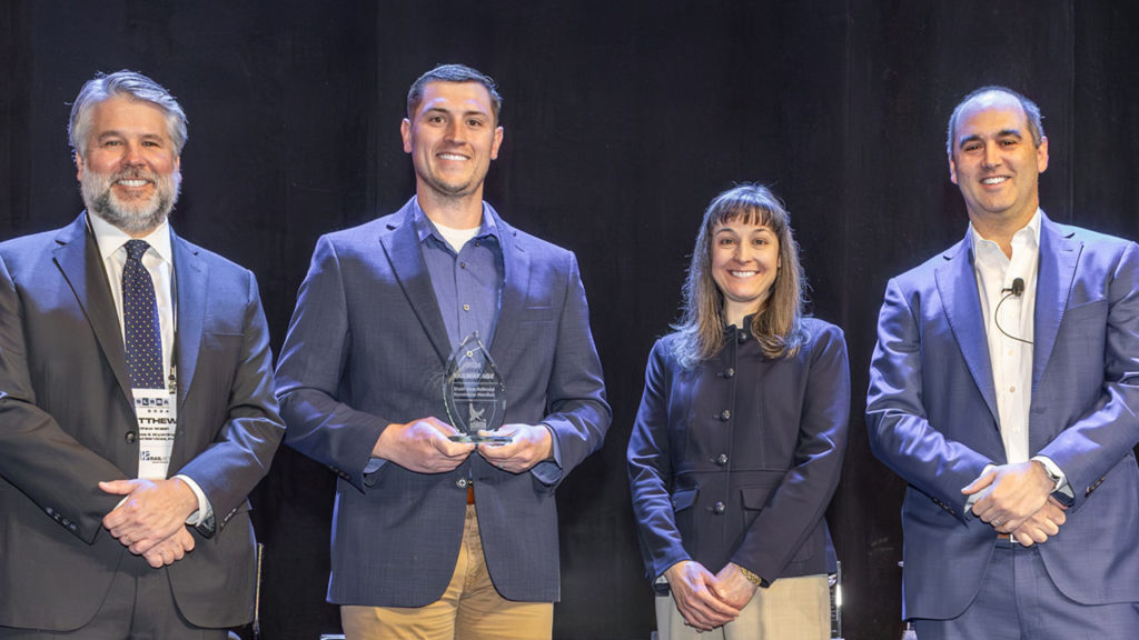 Watco Director of Rail Infrastructure, Division 1 and 2 Cameron Ginther, one of Railway Age’s 2023 “Fast Trackers,” accepted the award.