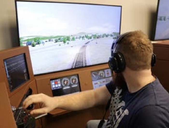 “The motion seat helps immerse students into different scenarios,” said Conrad. “They learn the feeling of different train movements, whether it’s going around a curve, stopping on a descending grade, or something else.”