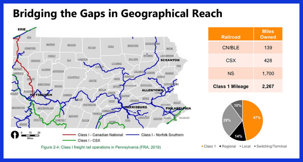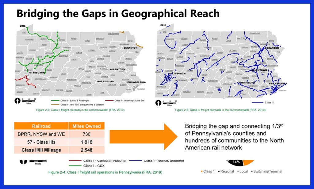 As evidence, Miller presented two maps showing how the entire state of Pennsylvania is actually covered by more miles of short line than Class I service: