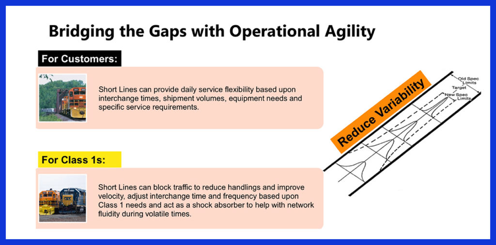 - Short lines can respond to variable customer car-placement and car-pulling requests at the customer’s location. That’s harder and more expensive to do when you have the cost structure per hour of time of a Class I railroad, or the rigidity of a large-network-scope track plant. Short lines might be the solution toward establishing a responsive local railroad sales team.