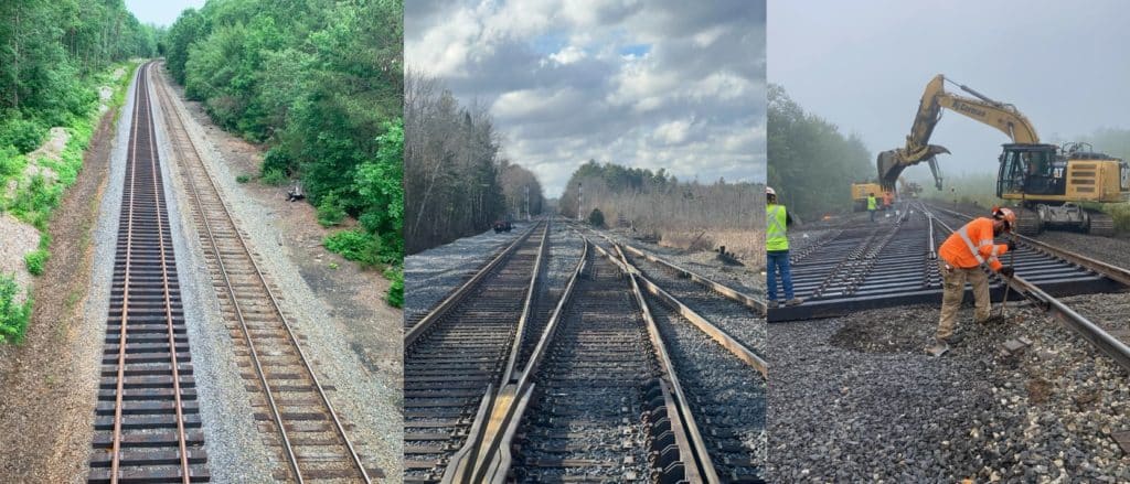 CSX Director of Construction Engineering North David C. Clark (P.E.) said, “The project, which entailed the construction of nearly 6 miles of siding between Wells, Maine and North Berwick, Maine, demanded extensive project planning, adaptive strategies, and meticulous production tracking . . . R. J. Corman Railroad Services exhibited exceptional skill and dedication throughout the project. Their team adeptly managed the placement of over 18,000 ties and 32,000 track feet of rail, in addition to the stockpiling and distribution of over 22,000 tons of ballast.”
