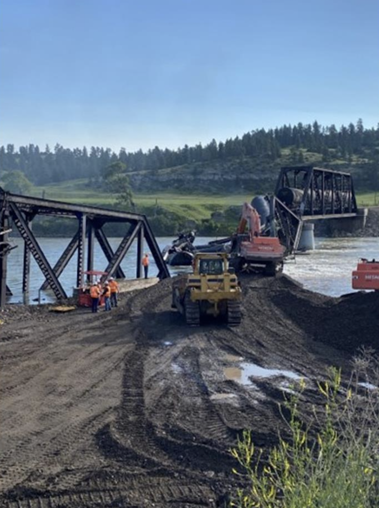 According to the Unified Command, MRL continued to make efforts to serve customers and limit impacts to the supply chain as much as possible. “MRL train crews are assisting in the movement of trains from Laurel to Great Falls and Great Falls to Shelby in order to aid in traffic re-routing and supply chain continuity,” Unified Command reported. “Bridge construction activity and preparation is ongoing as MRL continues to work with all federal, state and local agencies involved in the process. While there is no timeline currently available regarding completion of bridge construction, work efforts will continue with the goal of returning to normal operations as soon as possible, while keeping the safety of MRL employees, responders and community members as the top priority.”