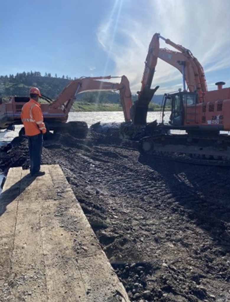 On June 28, the Unified Command reported that crews had safely removed a second asphalt car from the river, and construction of the causeway continued to improve access to the cars in the river. “Additional site preparation work on the east side of the river will also improve access to the railcars,” the Unified Command said. “Once this work is complete, crews will begin transferring the contents of the asphalt cars on the east side of the bridge, that have not entered the river, into stable railcars and moving them to a safe location.”
