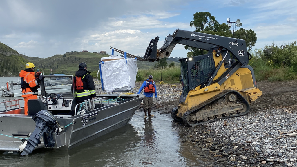 On July 6, cleanup crews continued expanding asphalt material collection efforts. According to the Unified Command, crews had been focused on the first four river miles downstream of the site. The assessment area extended 240 river miles downstream with the goal to cleanup as much asphalt material as retrievable, while limiting the impact to the ecosystem, it said.