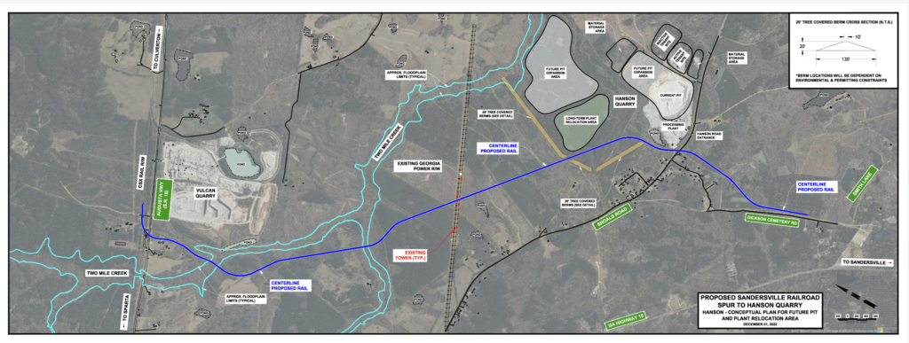 The 4.5-mile-long spur, which will connect the CSX rail line that runs along Georgia’s Highway 16 in Hancock County to the Heidelberg Materials aggregate quarry in Sparta, Ga. Pittman, is projected to “greatly benefit the Hancock County community, generating more than $1.5 million in annual economic benefit, reducing truck traffic on the county’s roads and creating jobs for the county,” according to Sandersville Railroad. Pittman is located adjacent to the Heidelberg Facility at the end of the spur.
