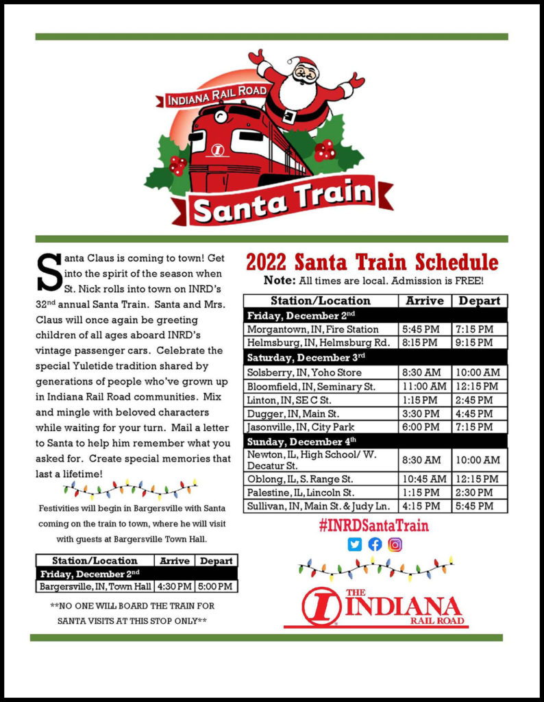 According to INRD, the Santa Train began in 1989 as an employee volunteer project. While it was canceled due to the pandemic in 2020, it was revived in modified form in 2021. “For 2022, the Santa Train returns to its full glory to enchant and spread cheer to the communities in which the railroad operates,” INRD reported.
