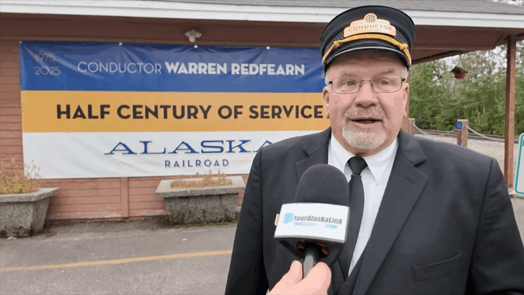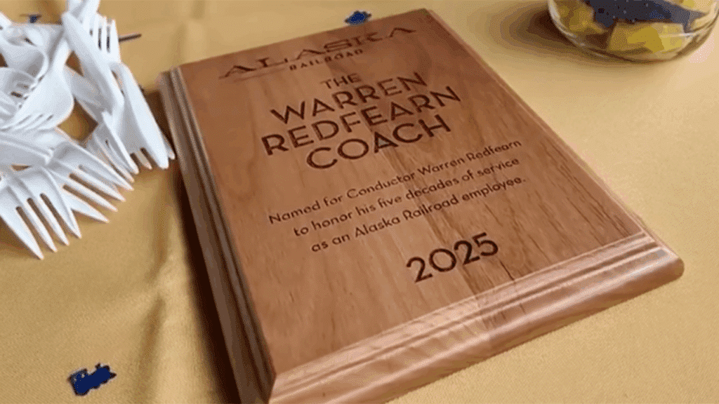 The Alaska Railroad Corp. (ARRC) on Aug. 21 honored the career of Conductor Warren Redfearn, who turned in his conductor’s uniform after almost 50 years. Following a passenger coach dedication ceremony in his honor of Vista Dome No. 521 at ARRC’s Talkeetna Depot, Redfearn enjoyed a farewell ride as honorary conductor aboard the Hurricane Turn flagstop train.