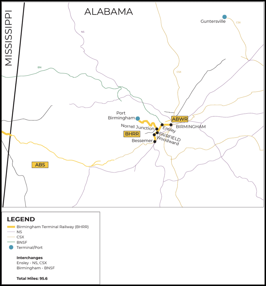 Watco also reported via X that a new 25,000 square-foot warehouse will kick off operations in 2025 at the 184-acre Port Birmingham, which it describes as the only rail-served port in Central Alabama (see map right). “[T]his rail- and barge-served facility will primarily store steel coils and provide steel producers access to new markets,” according to Watco.