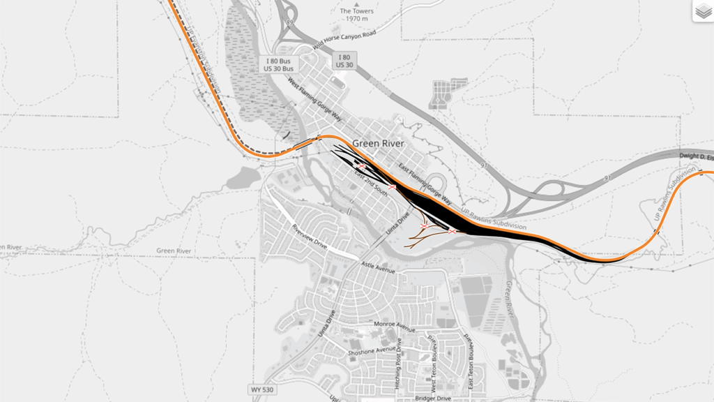 Green River, Wyo., Map Courtesy of OpenRailwayMap.org.