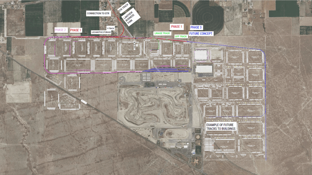 The Surface Transportation Board approved STR in April 2024; construction started in November. The railroad will operate five days a week with a 286,000-pound GRL (gross rail load) capacity. Lakeview Business Park, whose tenants have only able to receive and ship commodities by truck, will begin receiving rail shipments later this month.