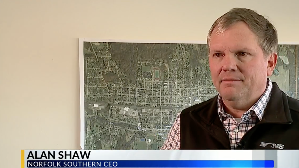 On Feb. 19, Alan Shaw visited East Palestine for the second time, meeting with community members, local leaders and Norfolk Southern railroaders “who call the area home,” NS said. He also spent time with the crews working around-the-clock at the incident site. Shaw attended the Feb. 6 meeting where the decision was made to initiate controlled release and burn-off of hazmat from the tank cars involved in the derailment.