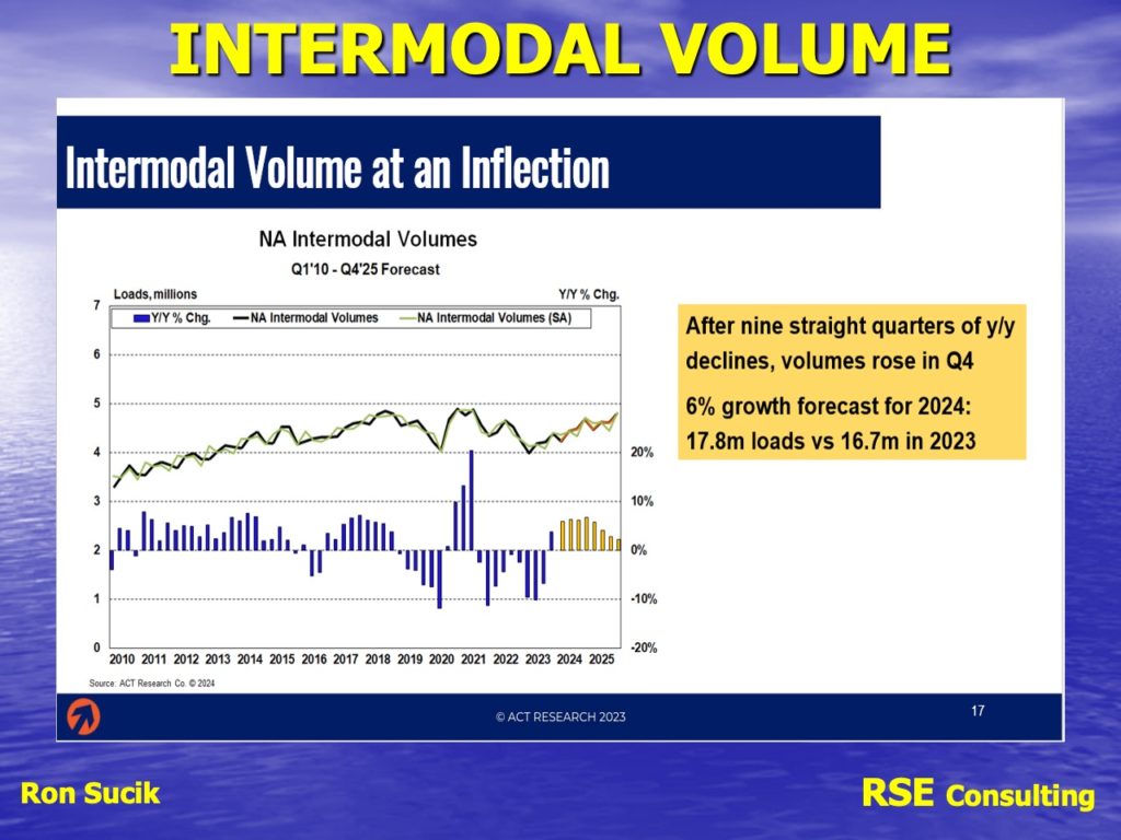 My point is the existing inflationary rate seems to be more like 10%, and this all trickles down to the basic consumer one way or another. With the high debt ratio and less disposable funds, I feel uncomfortable that consumers can sustain the demand to drive intermodal loadings up very high. I believe the driving factors are certainly there for positive numbers and it should certainly be easy enough to beat 2023’s soft numbers, but I will hold my breath until well into second quarter before I would feel comfortable with any high numbers. But this is an election year, so anything can happen.