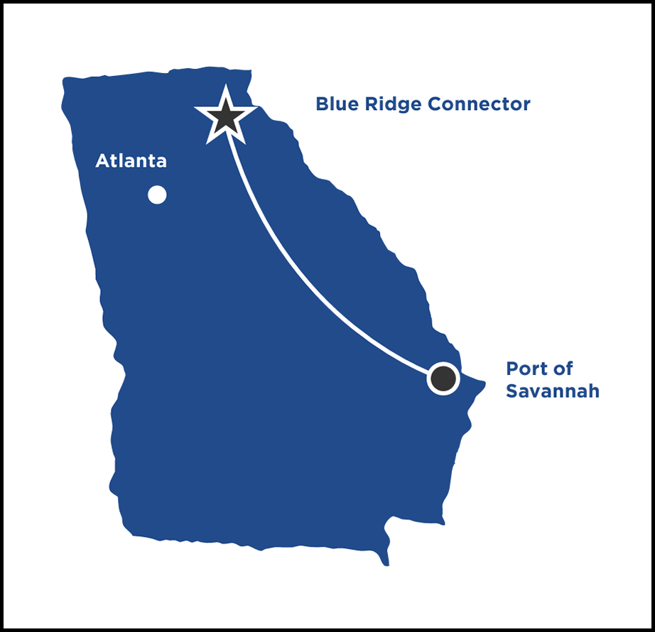 The Blue Ridge Connector will link to the Port of Savannah’s Mason Mega Rail Terminal, which is served by NS and CSX.