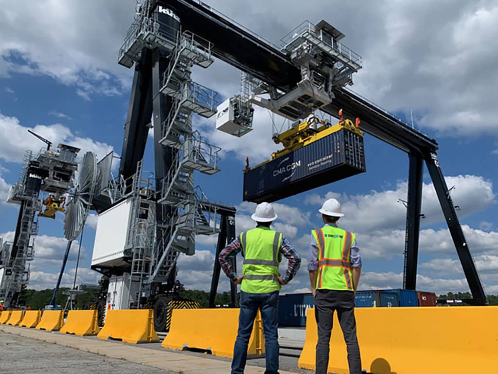 Austell is equipped with six fully electric Kuenz RTG Freerider cranes. In March, NS switched handling of international intermodal traffic from a wheeled system to a stacked operation. “Stacking helps us maximize space utilization, increasing our parking capacity by more than 30%, and it provides flexibility in handling diverse cargo types and sizes,” NS noted. “Reducing ground traffic also improves security, ensuring smoother operations and heightened safety. We are managing the program with the implementation of [INFORM’s] stack optimization technology. This technology, which enhances transparency and optimizes yard inventory and crane movement operations, has already demonstrated its efficacy at Rossville , which served as a precursor to the Austell launch.”