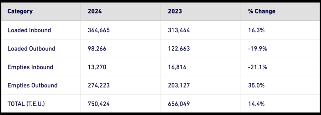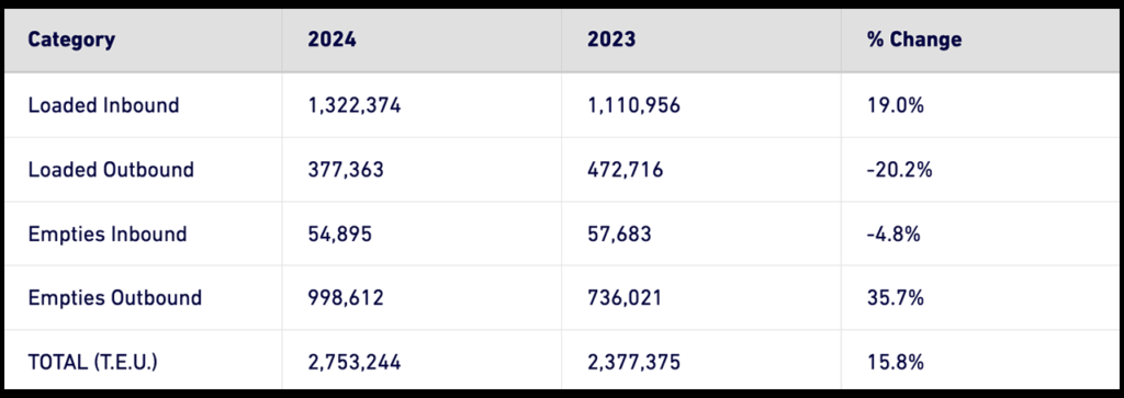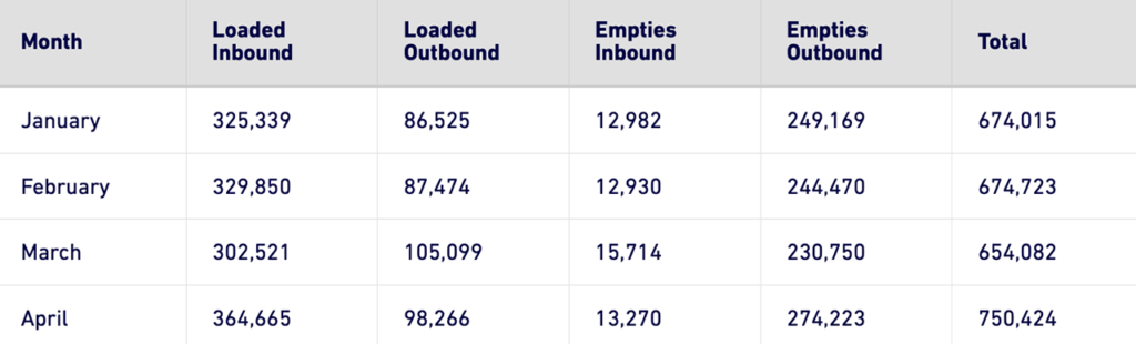 The Port moved 2,753,244 TEUs through the first four months of 2024, up 15.8% from the same period last year.