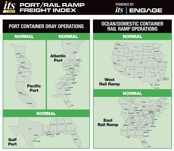 ITS Logistics each month releases the ITS Logistics U.S. Port/Rail Ramp Freight Index, which forecasts port container and dray operations for the Pacific, Atlantic and Gulf regions. Ocean and domestic container rail ramp operations are also highlighted in the index for both the West Inland and East Inland regions.