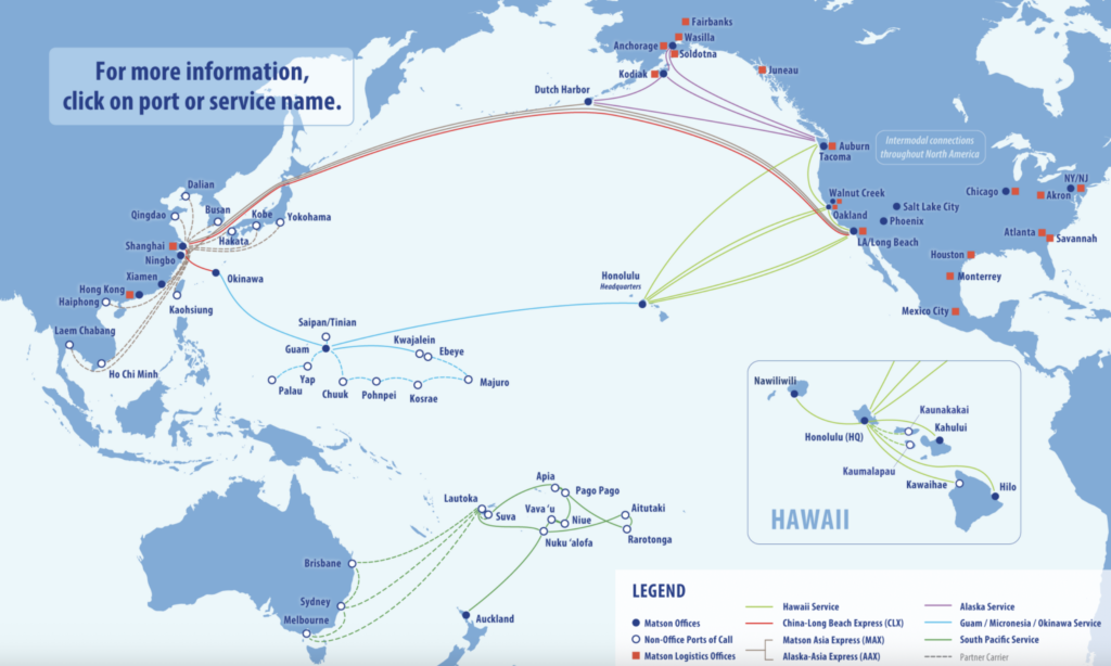 Additionally, Matson subsidiary Matson Logistics works with all Class I railroads to “design and execute efficient and flexible programs for a broad base of shippers,” according to Matson. It said that partnerships with Union Pacific, Norfolk Southern, BNSF, Canadian Pacific Kansas City, Ferromex, CSX, and CN provide direct service into, out of, and within Mexico (download Matson Logistics company profile below).