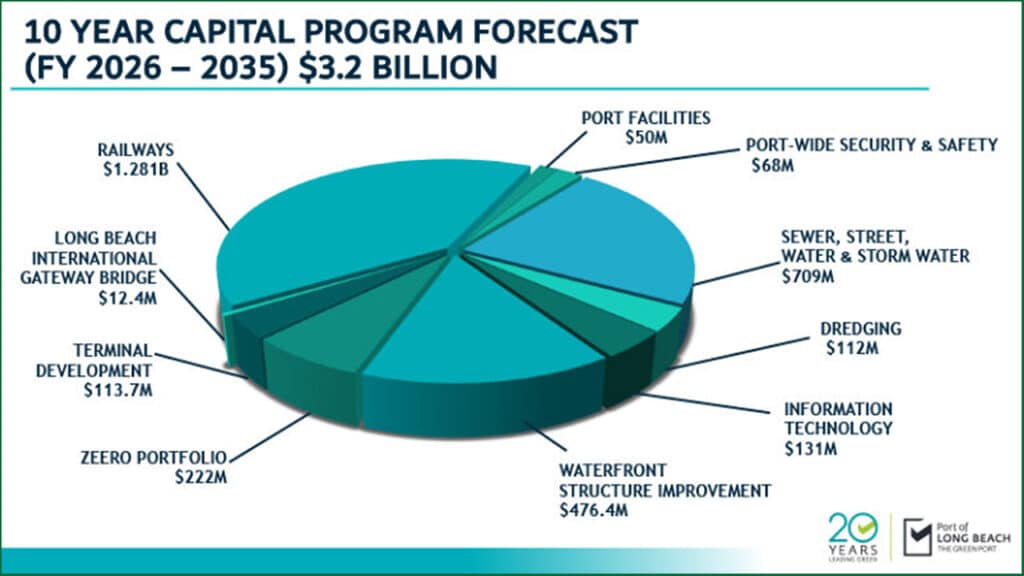 The plan covers fiscal years 2026 through 2035. All infrastructure projects are subject to approval by the Long Beach Board of Harbor Commissioners.
