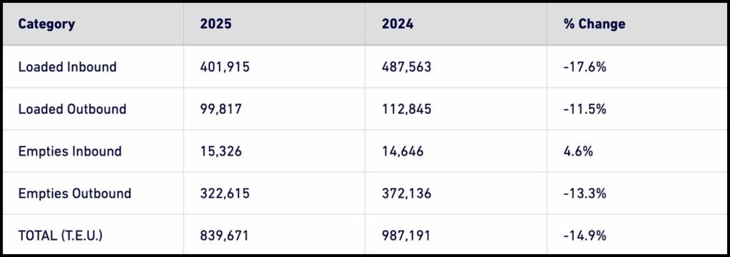 The Port said it moved 8,229,916 TEUs (Twenty-Foot Equivalent Units) through the first 10 months of 2025, up 4.1% from the same period last year.